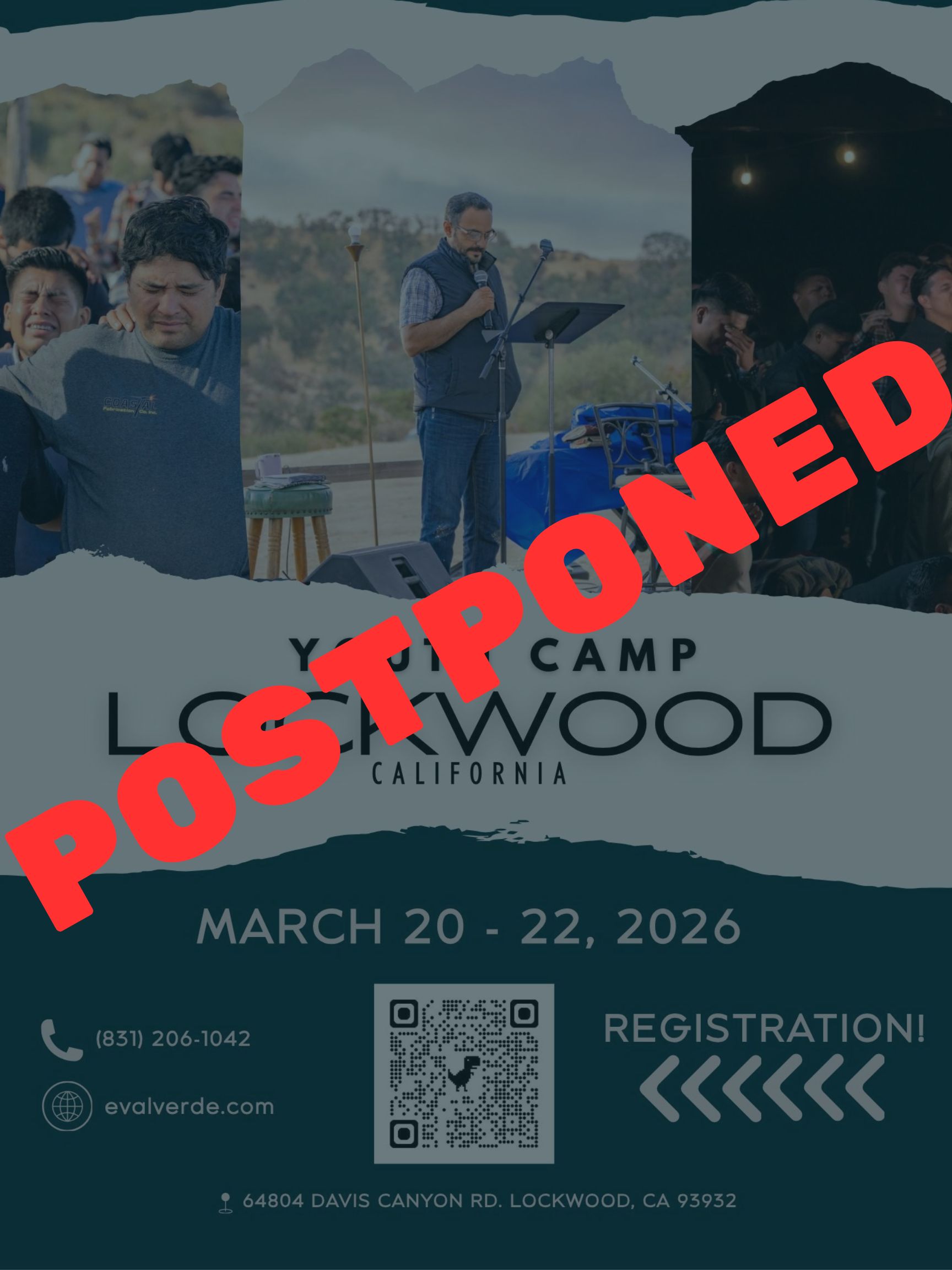 The LORD bless you. Please be advised that Lockwood Camp has been postponed until further notice.